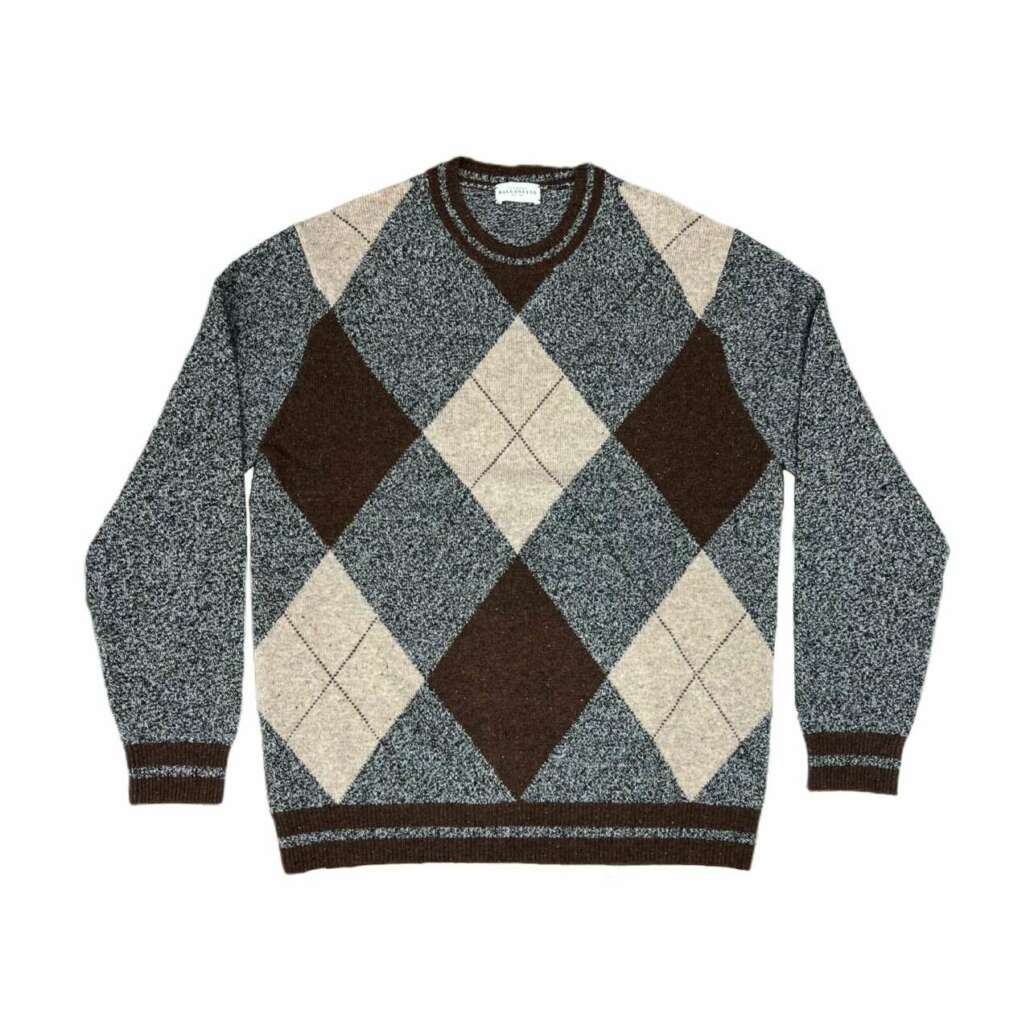 maglia girocollo in lana moulinè, fantasia argyle sul davanti,